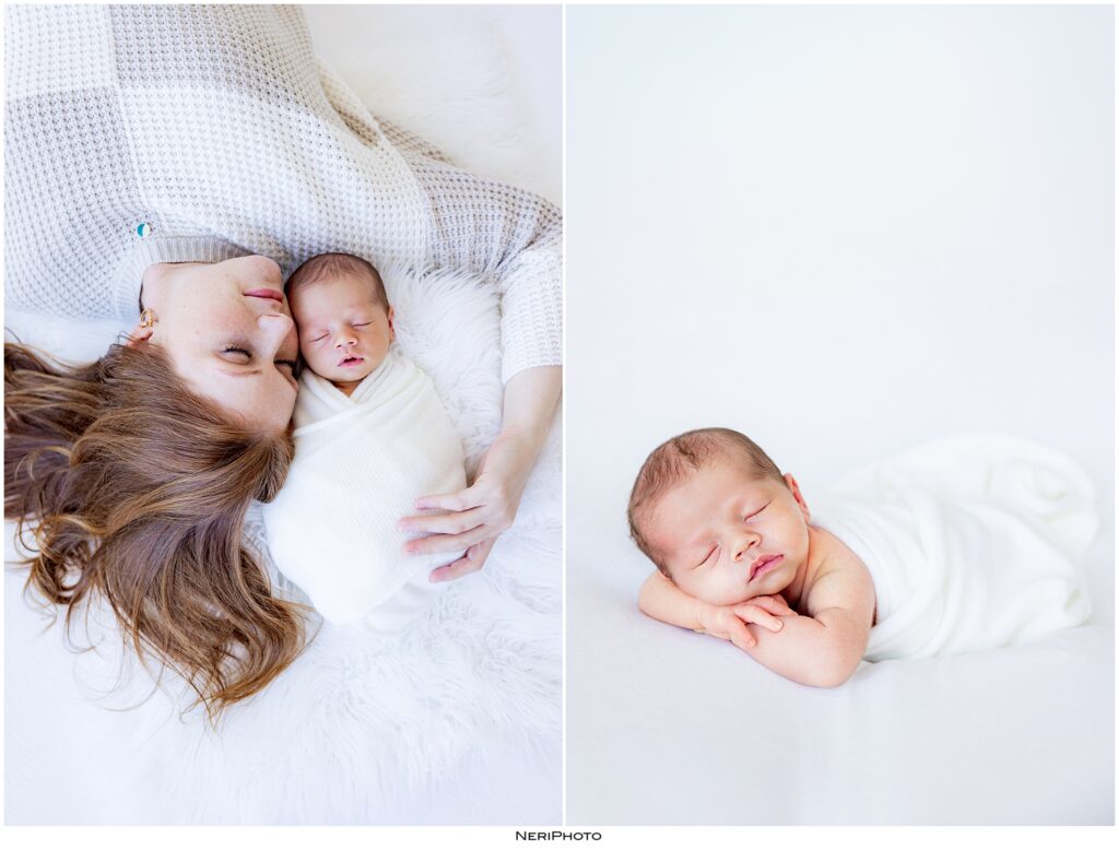 He slept through it all—no startles, no cries—just those tiny sighs every parent knows so well. I used a mix of neutrals, creams, and a hint of gray, keeping things timeless and classic. These tones photograph beautifully and let the baby’s natural skin tones shine.