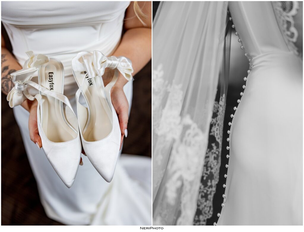 Maddison carried a bouquet of white roses and baby’s breath designed by Rosie’s Little Posies, a classic pairing that looked stunning against her modern gown. The soft whites popped beautifully against the venue’s warm tones and fall colors outside.