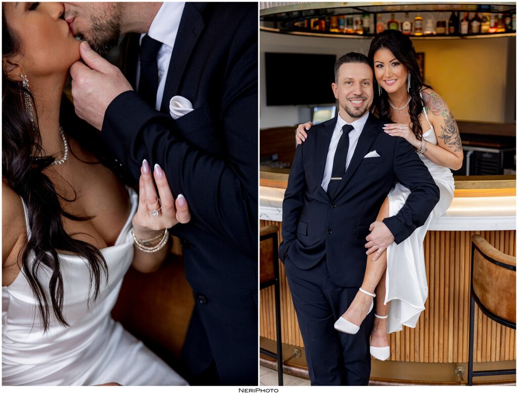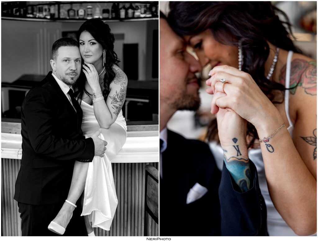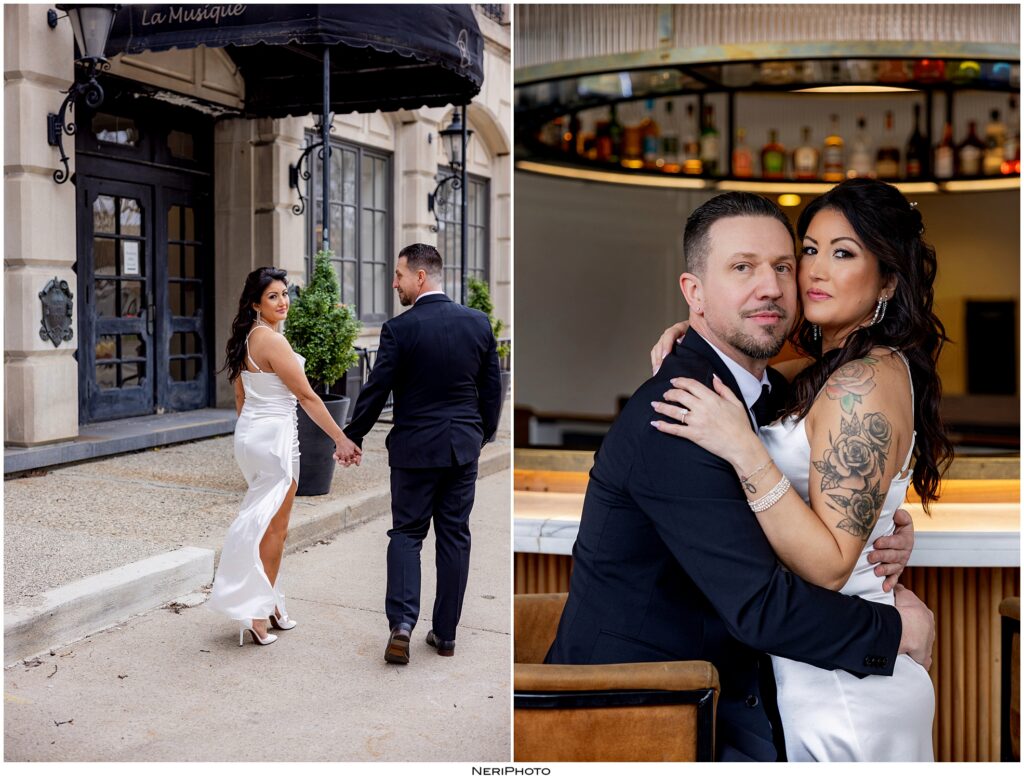 After our time in the Fisher Building, we headed next door to Hotel St. Regis and used their bar for a few photos. It was the perfect contrast to the grand architecture of the Fisher Building. The bar setting felt cozy, stylish, and a little more playful, giving Gabrielle and Jimmy’s gallery even more variety.